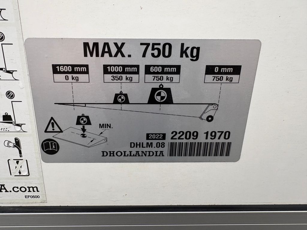 Skříňová nástavba s vnitřními rozměry délka 420cm šířka 220cm výška 230cm. Hydraulické čelo DHOLLANDIA 750kg.